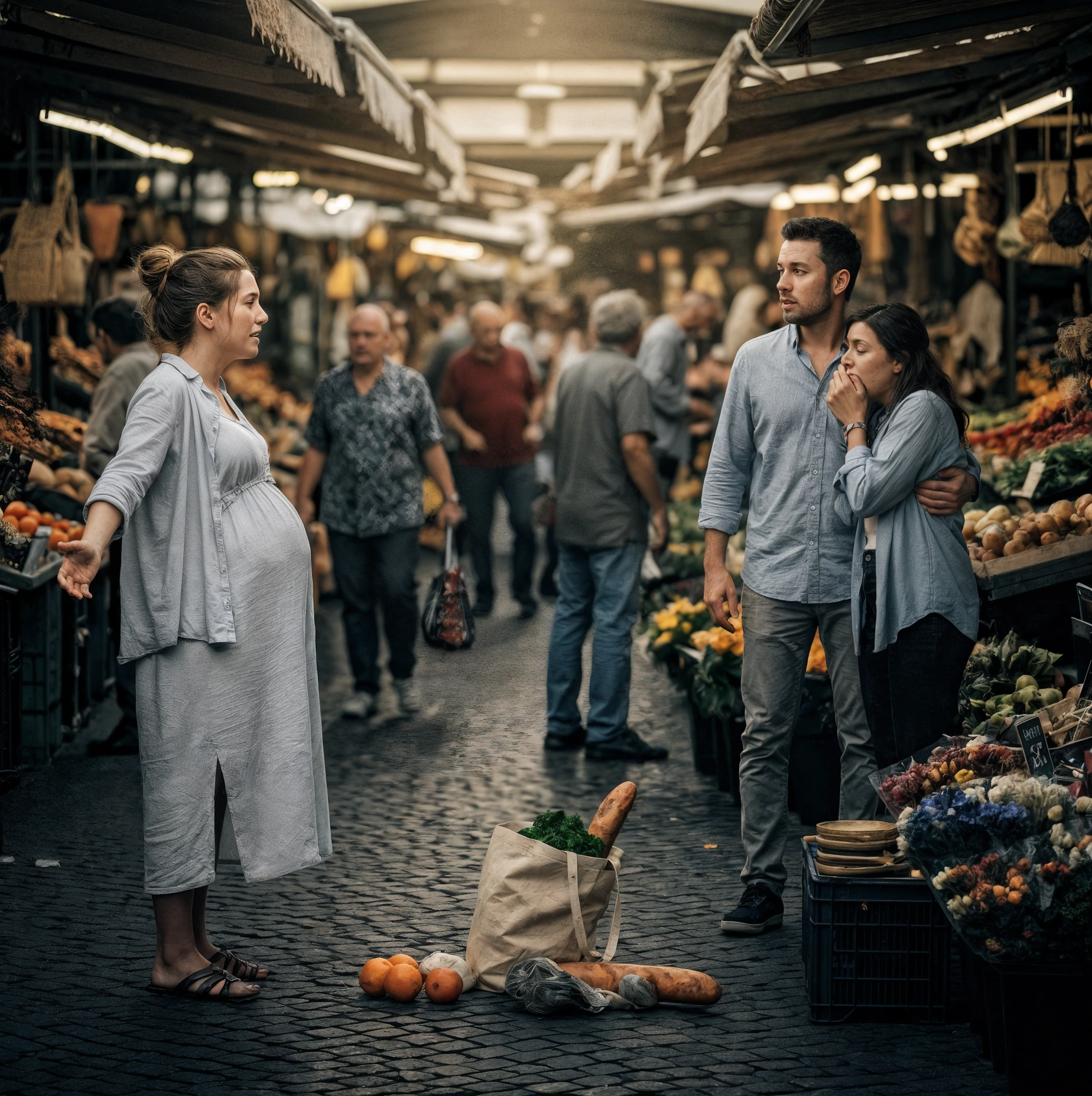 Prossima al parto, la moglie andò da sola a comprare cose per il bambino, senza immaginare che si sarebbe imbattuta nel marito mentre accompagnava l’amante al mercato. Un solo suo messaggio lo paralizzò sul posto…