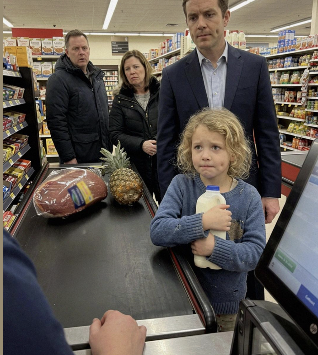 Una bambina di otto anni mi ha chiesto di comprare il latte per suo fratello – il giorno dopo, un uomo che era dietro di lei in fila si è presentato alla mia porta con la sicurezza