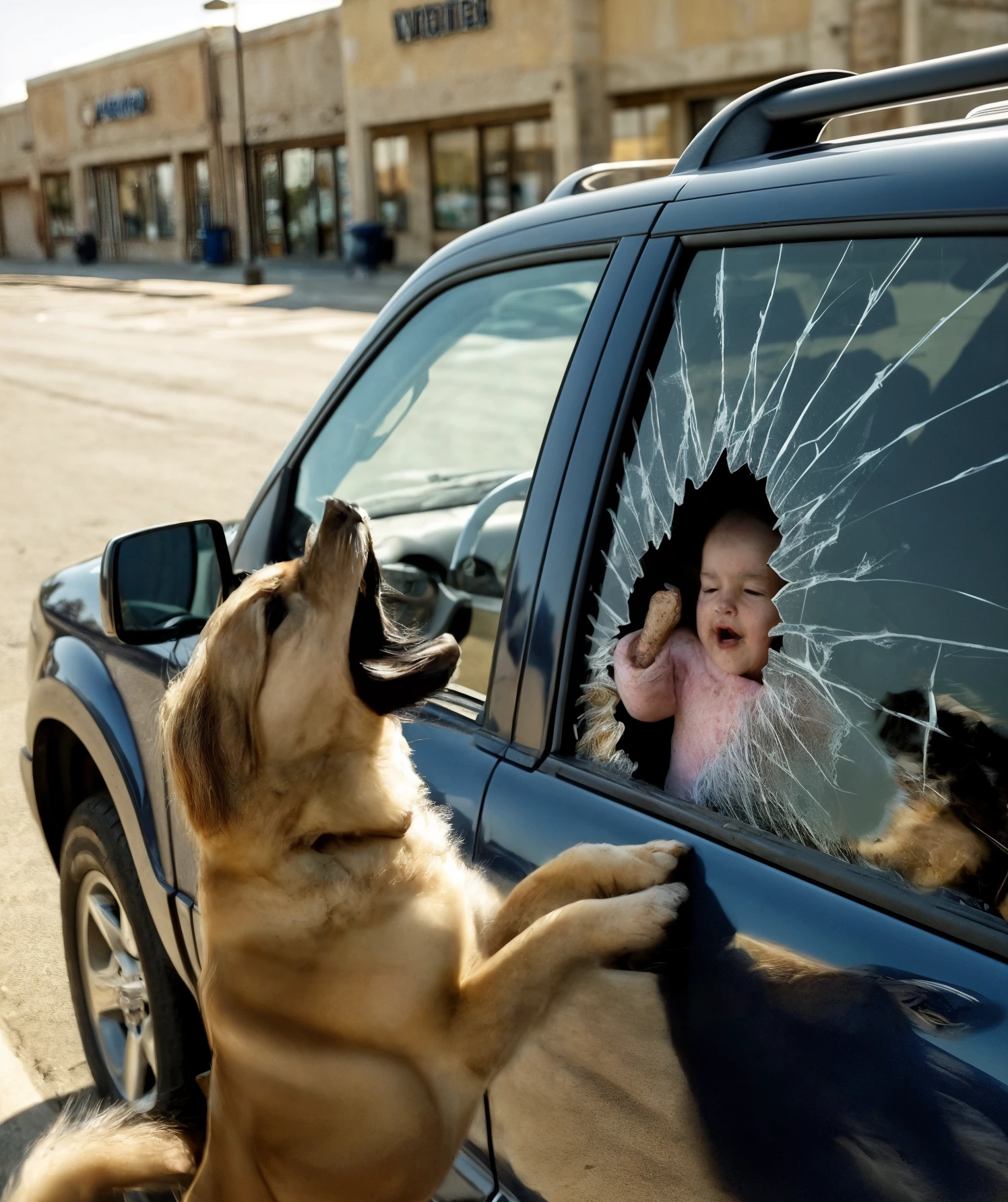 Nel caldo soffocante di un parcheggio nel Mississippi, un randagio malconcio rifiutava di andarsene. Mentre la gente passava, si scagliava contro un SUV chiuso a chiave, disperato di raggiungere la bambina silenziosa all’interno—finché il vetro non si incrinò.