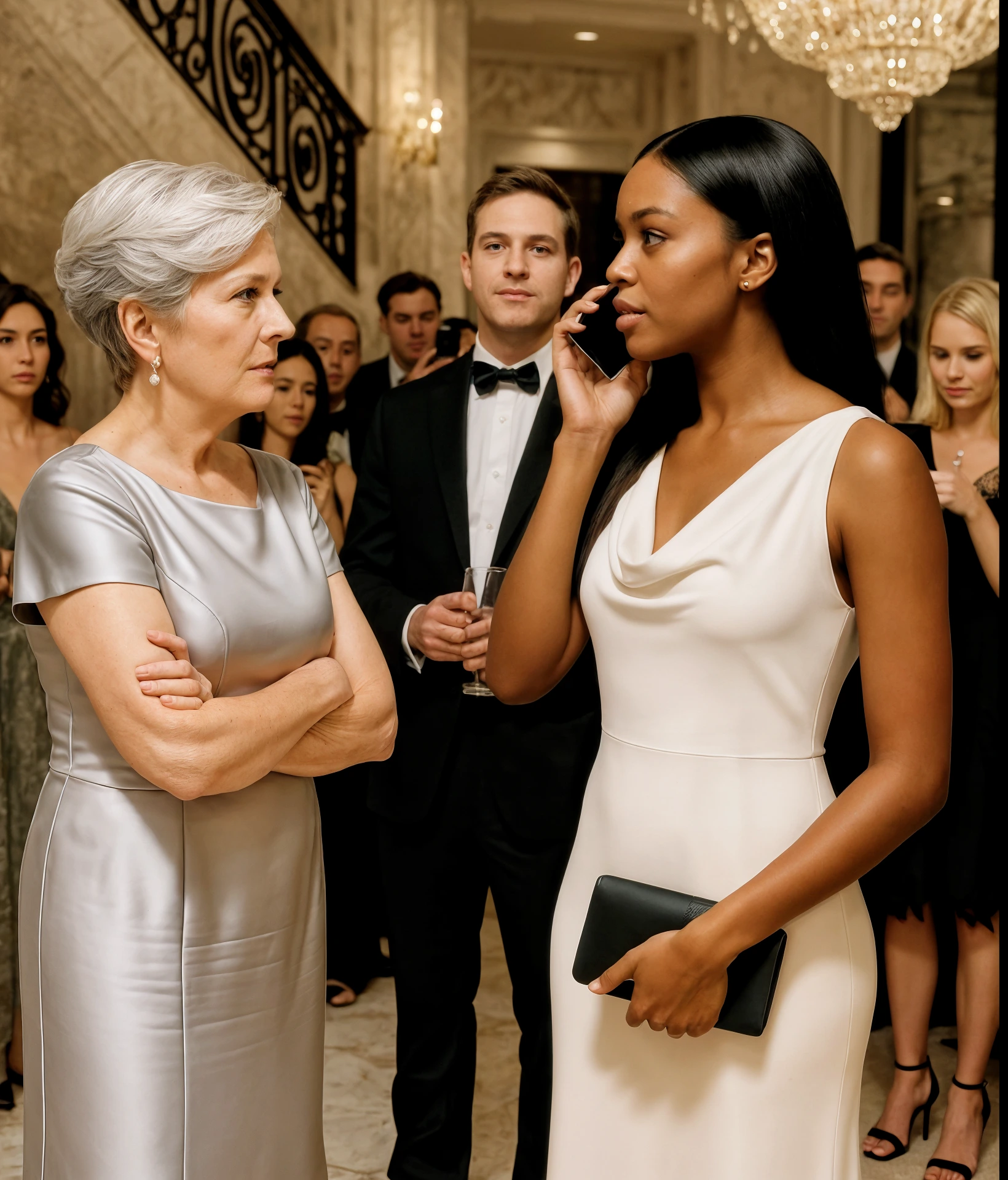 L’obiettivo della sua furia? Una donna nera, alta, in un abito color avorio, la cui calma compostezza era l’unica barriera contro l’umiliazione.