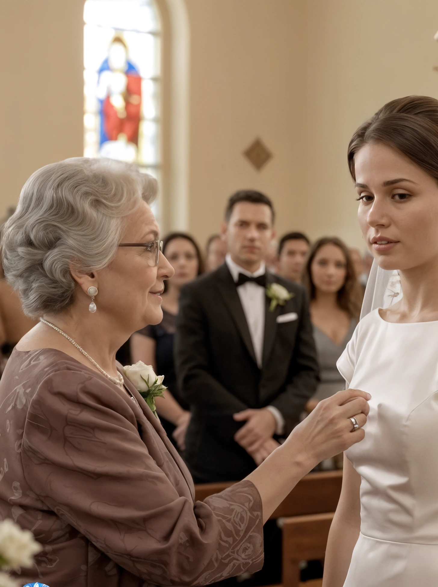 Si avvicinò a me, i tacchi che ticchettavano piano sul vecchio pavimento di legno. Poi, con una tenerezza inaspettata, sfiorò il pizzo della mia manica.