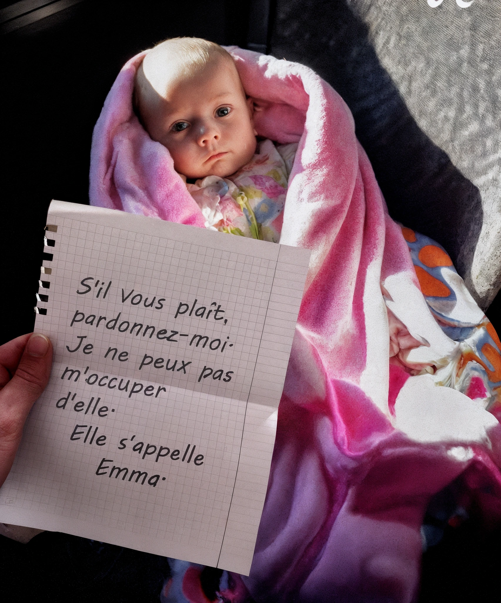 Non c’era borsa, né pannolino, né nome. Solo un foglietto, piegato una volta, infilato nella coperta. Le mie mani tremarono mentre lo aprivo.
