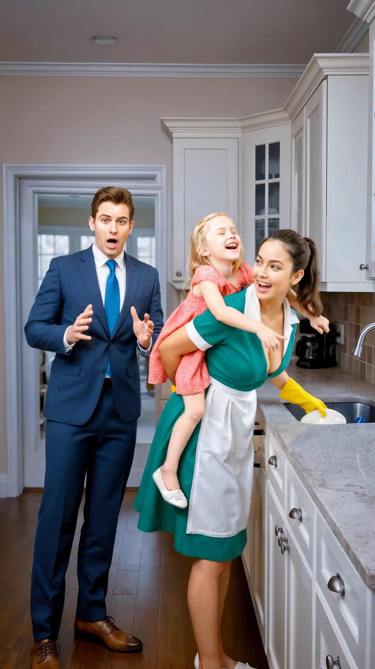 Sebastián Aguirre rimase immobile sulla soglia della cucina, con le chiavi ancora strette nel pugno, come se quel metallo potesse ancorarlo alla realtà. Era appena arrivato, eppure la scena davanti a lui lo colpì con una forza che non si aspettava. Lucía, sua figlia di quattro anni, aveva le braccia strette attorno al collo di Natalia — la giovane dipendente che lui stesso aveva assunto tre mesi prima — e rideva con le guance arrossate, con quella risata limpida che Sebastián credeva di aver perso per sempre.