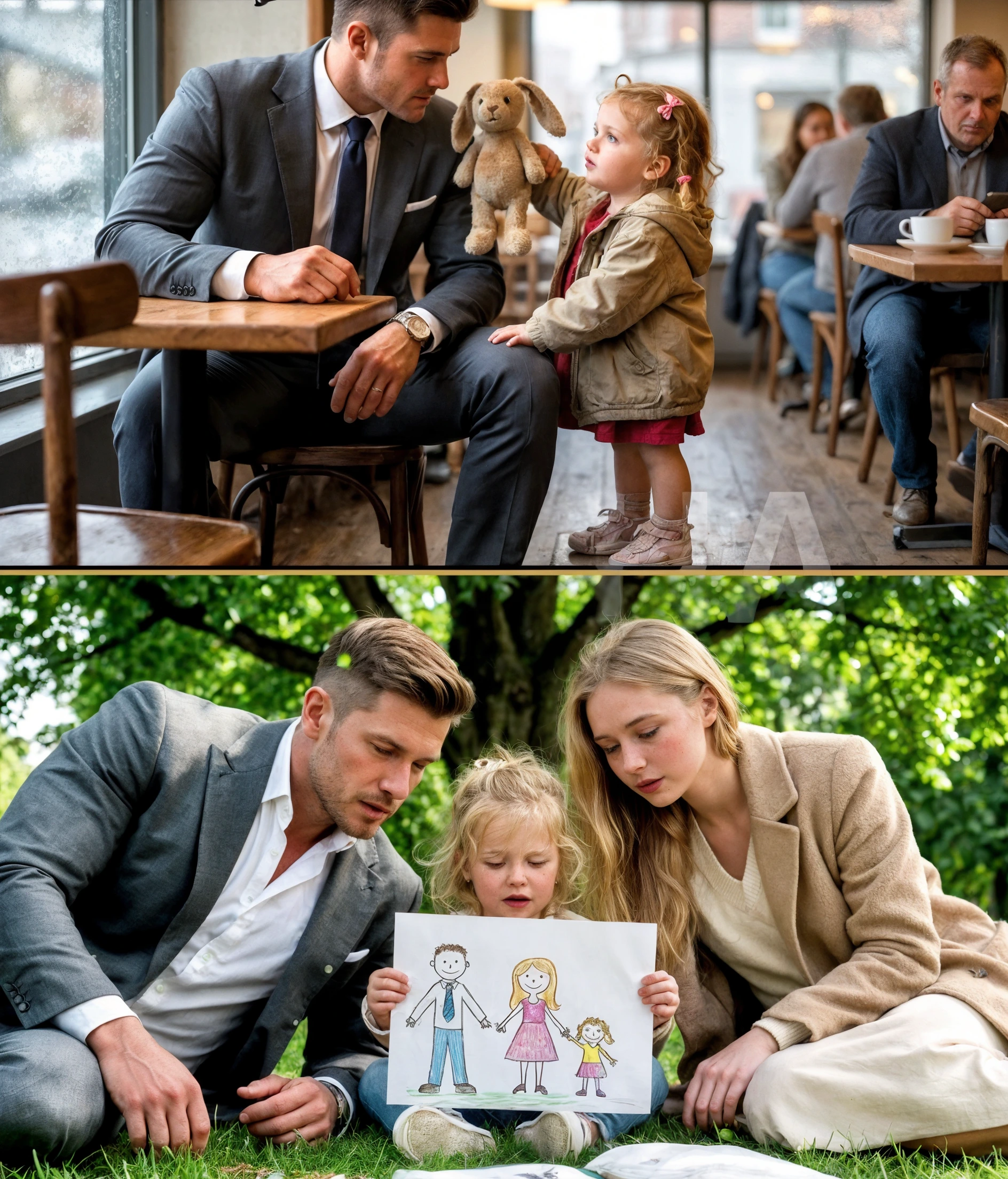 Elliot si inginocchiò davanti a Mia, il cuore in corsa. “Mia,” chiese piano, “vuoi fargli vedere il tuo disegno?”