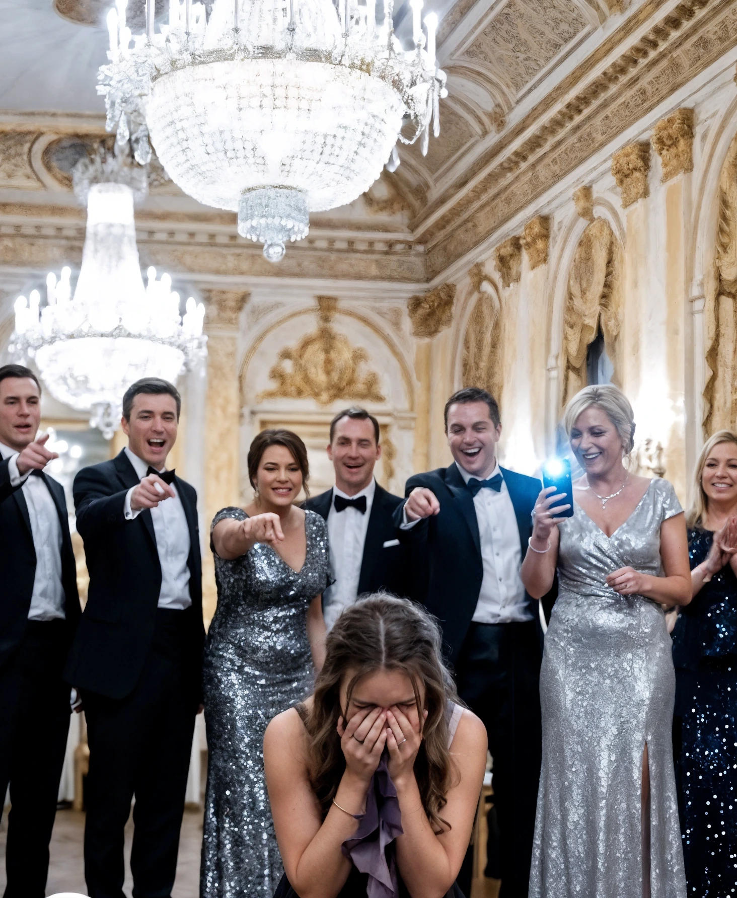 Il viso di Emma si incendiò di umiliazione. La folla rise nervosamente; alcuni stavano già filmando la scena con il telefono. Michael, invece di difenderla, distolse lo sguardo e sorseggiò il suo drink come se Emma fosse invisibile.