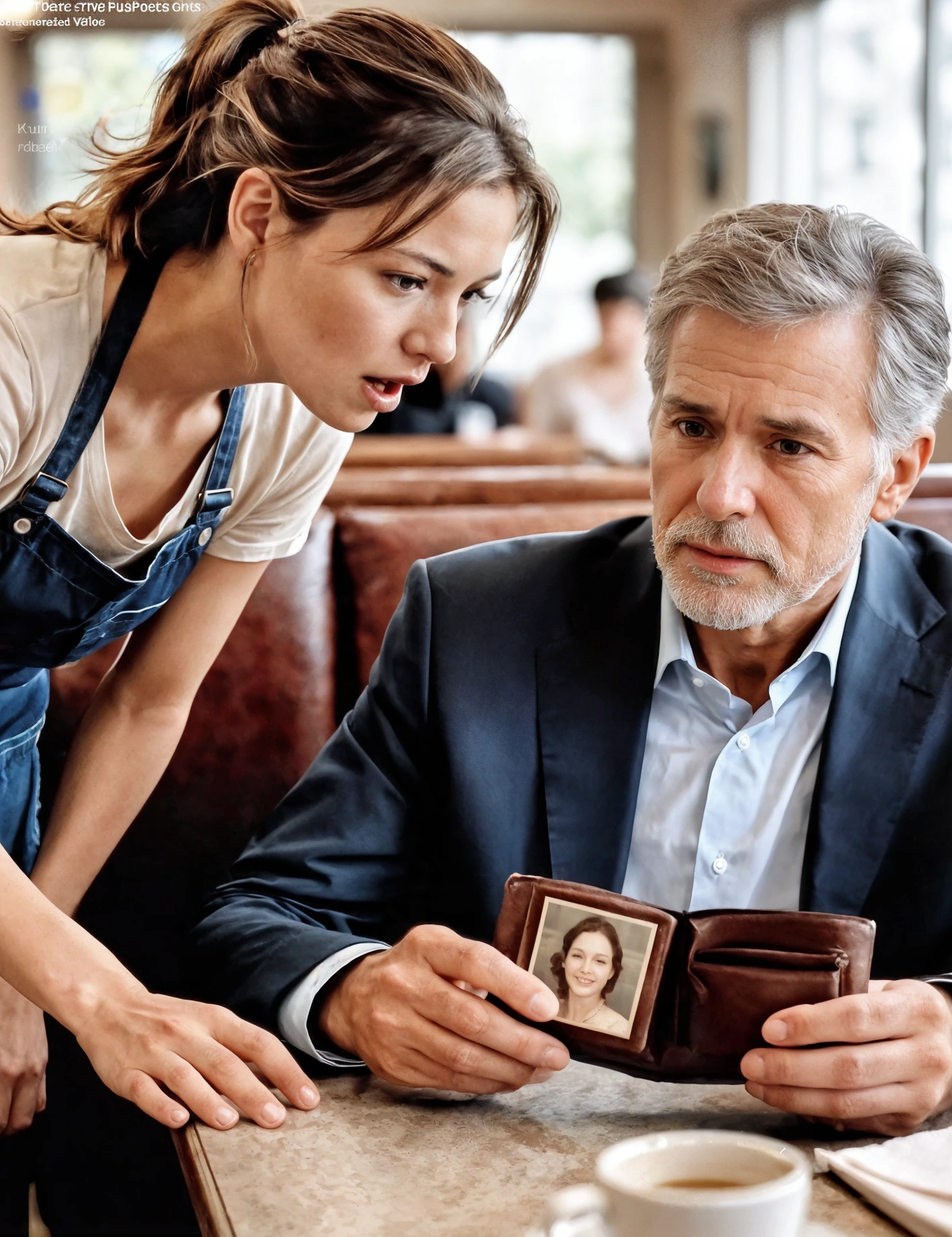 L’uomo sbatté le palpebre, la fissò, poi lentamente riprese il portafoglio. Le dita esitarono prima di riaprirlo. Studiò la foto come se la stesse guardando davvero per la prima volta.