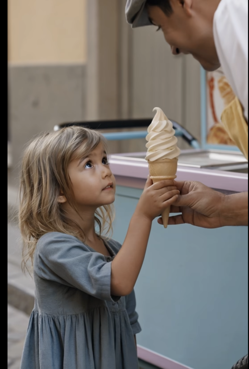 La scelta tra conservare l’ultimo cono da vendere… o porgerlo a una bambina affamata che sembrava avesse già sentito troppe volte la parola “no”.