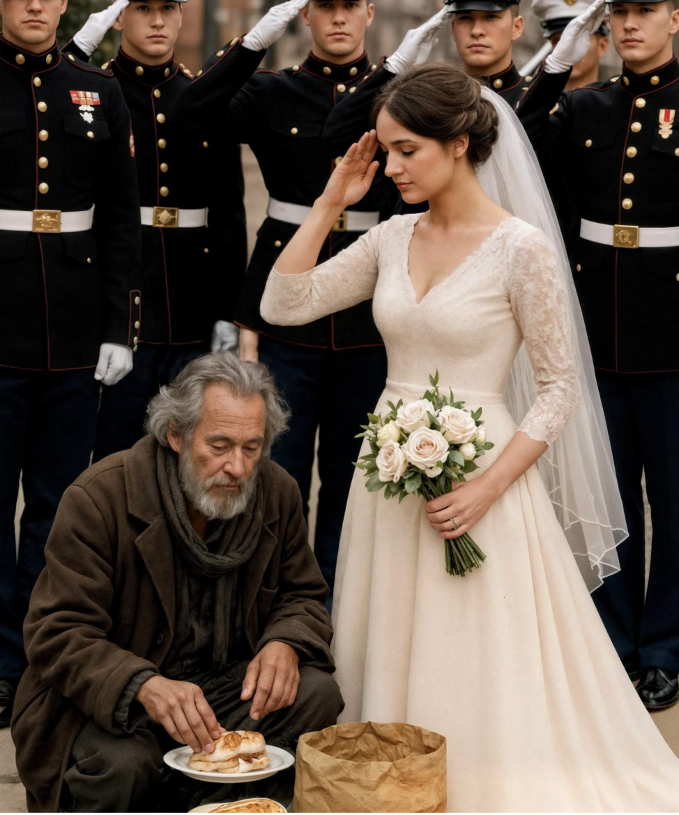 La mattina della cerimonia, Emily guardava dalla finestra della camera nuziale mentre gli ospiti arrivavano. Poi lo vide — l’uomo anziano — immutato, vicino all’ingresso, con un abito pulito ma usato. Gli ospiti bisbigliavano: