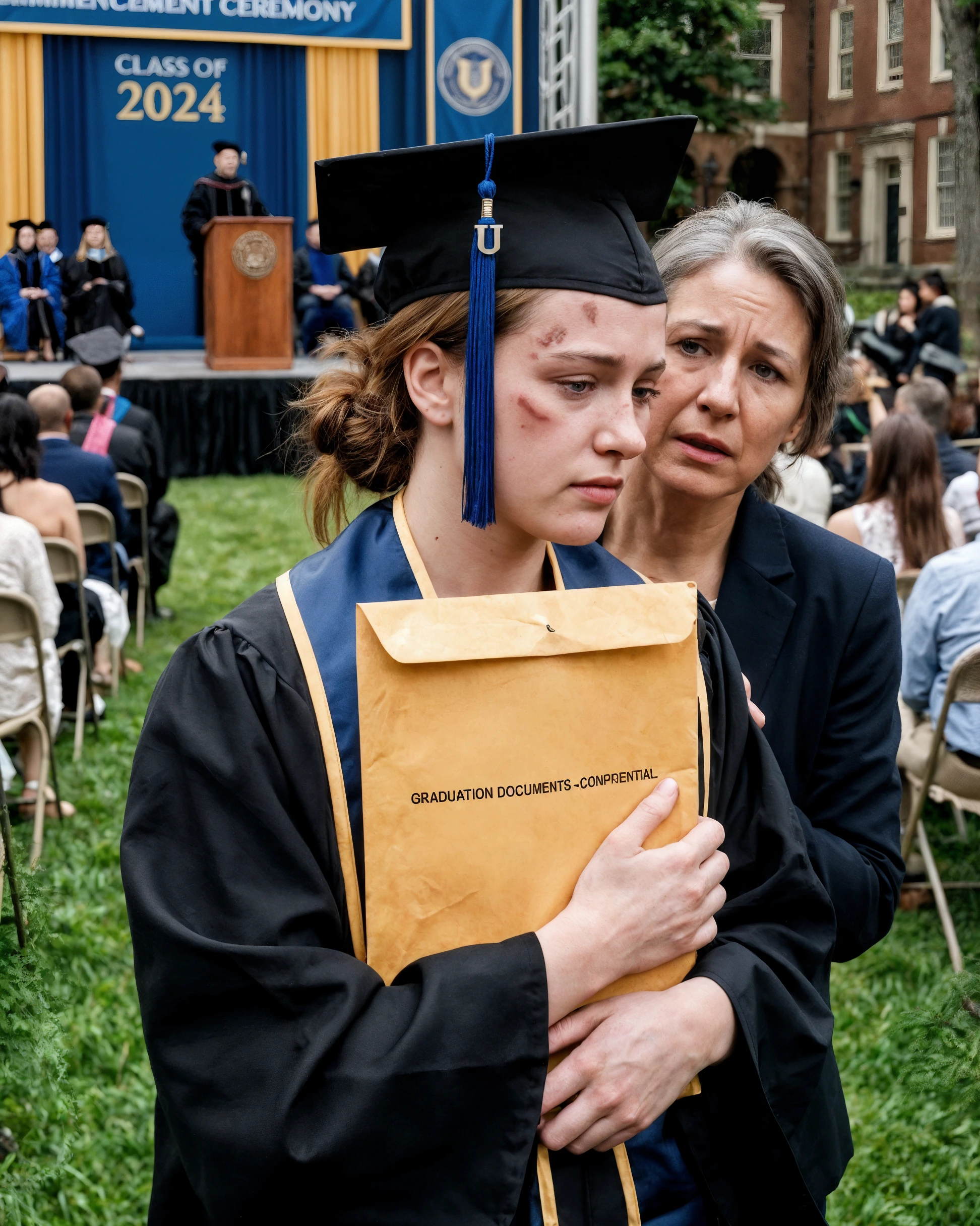 Alla mia laurea, mio padre improvvisamente annunciò che mi avrebbe tagliata fuori. «Non sei nemmeno mia figlia biologica», disse. La stanza cadde nel silenzio. Mi avvicinai al podio, sorrisi e dissi: «Visto che stiamo rivelando segreti sul DNA…» Poi aprii la busta — e sua moglie impallidì.