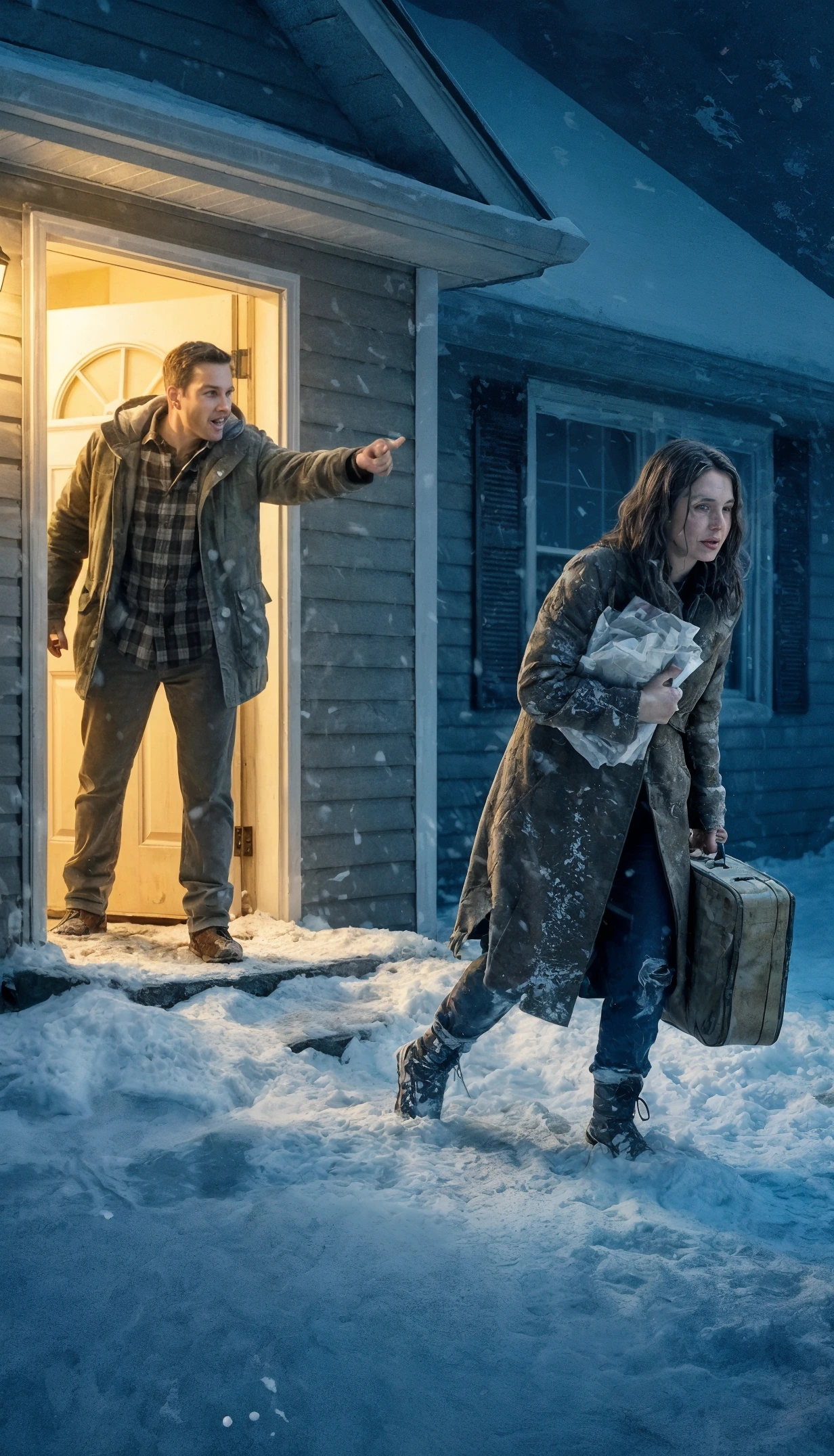 Mio marito mi ha buttata fuori nel mezzo di una bufera di neve, urlandomi: «Sei sterile e inutile! Ho bisogno di una vera donna.» Mi sono ritrovata in una pensilina dell’autobus, gelata fino alle ossa, con le carte del divorzio strette tra le mani, ad aspettare la fine. Poi un vedovo con tre figli ha abbassato il finestrino della sua auto. «Sali,» ha insistito. Ero terrorizzata all’idea di fidarmi di uno sconosciuto, ma non avevo scelta. Sono entrata in casa sua… e quello che ho visto appeso alla parete del soggiorno mi ha fatto sussultare.