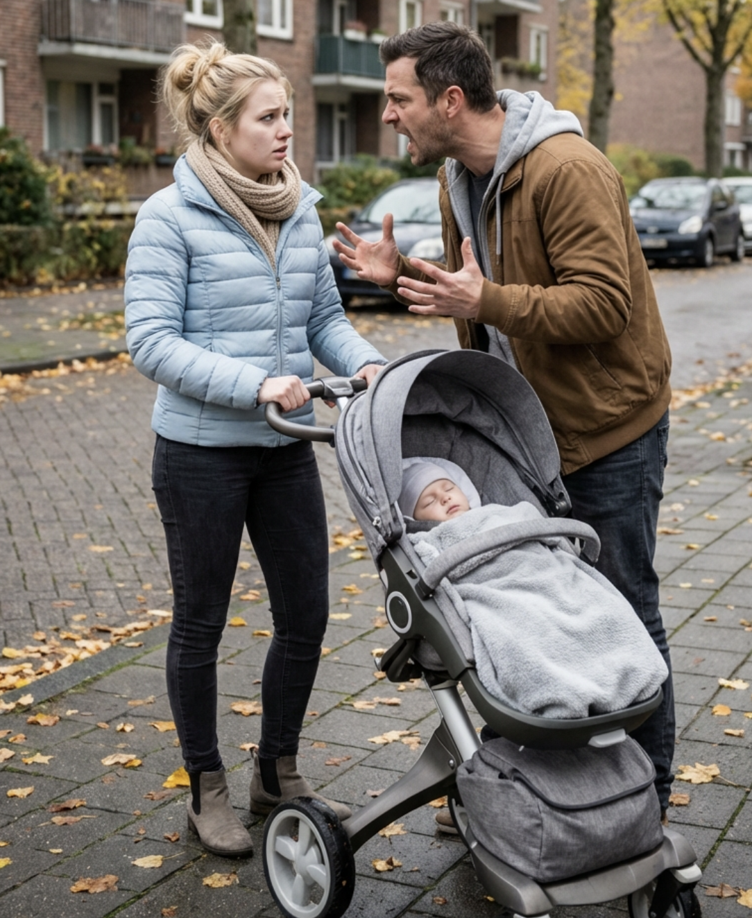 Olena, che cos’è questo circo? Moglie, dove stai andando? Dall’ingresso dell’edificio al parco? Tanto lì non ti vede nessuno.